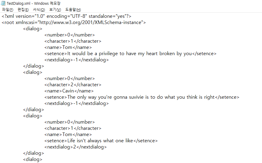 - XmlDocument 클래스의 객체를 선언한 뒤, Resources.Load<TextAsset> 으로 읽어들인 Xml 파일을 객체에 지정