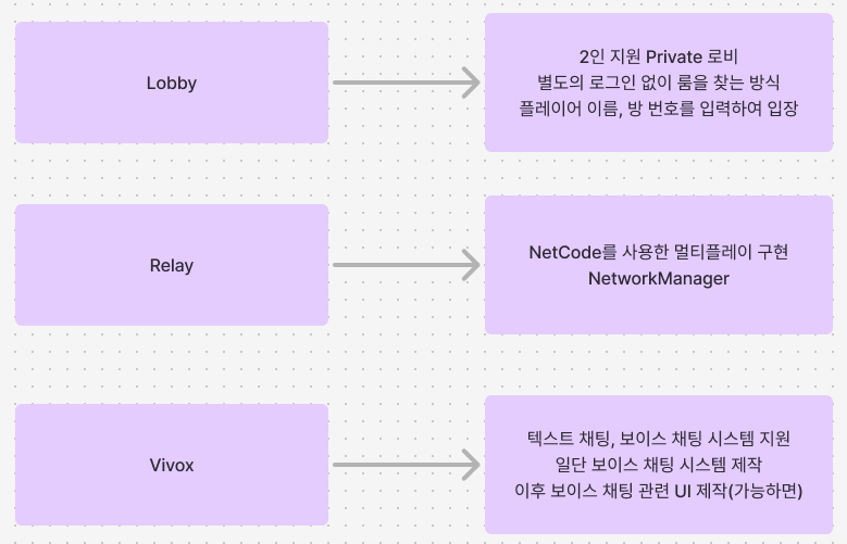 일단 로비와 플레이의 경우, Photon2를 사용하여 구현해볼까 하다가, 한번 UGS를 활용하여 Lobby, Relay를 사용하여 구현해볼 생각입니다.