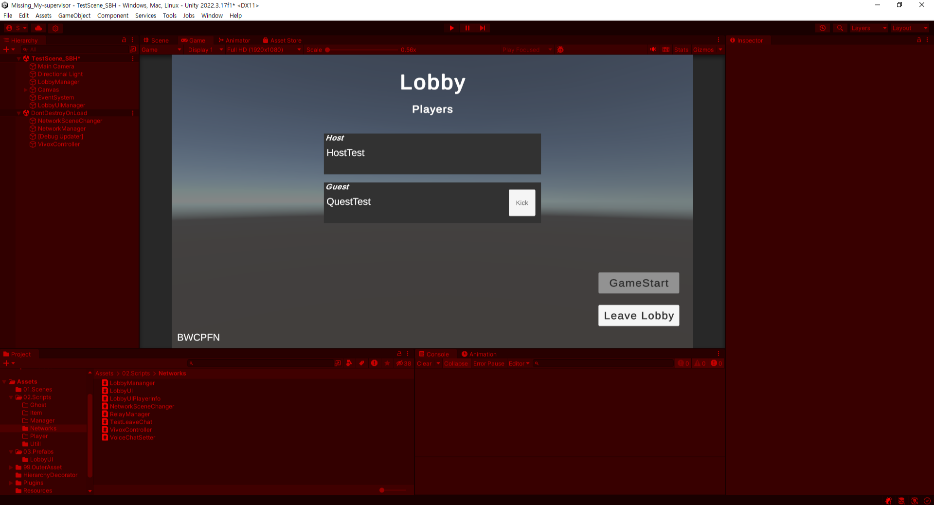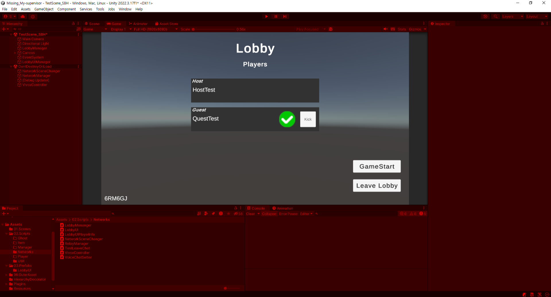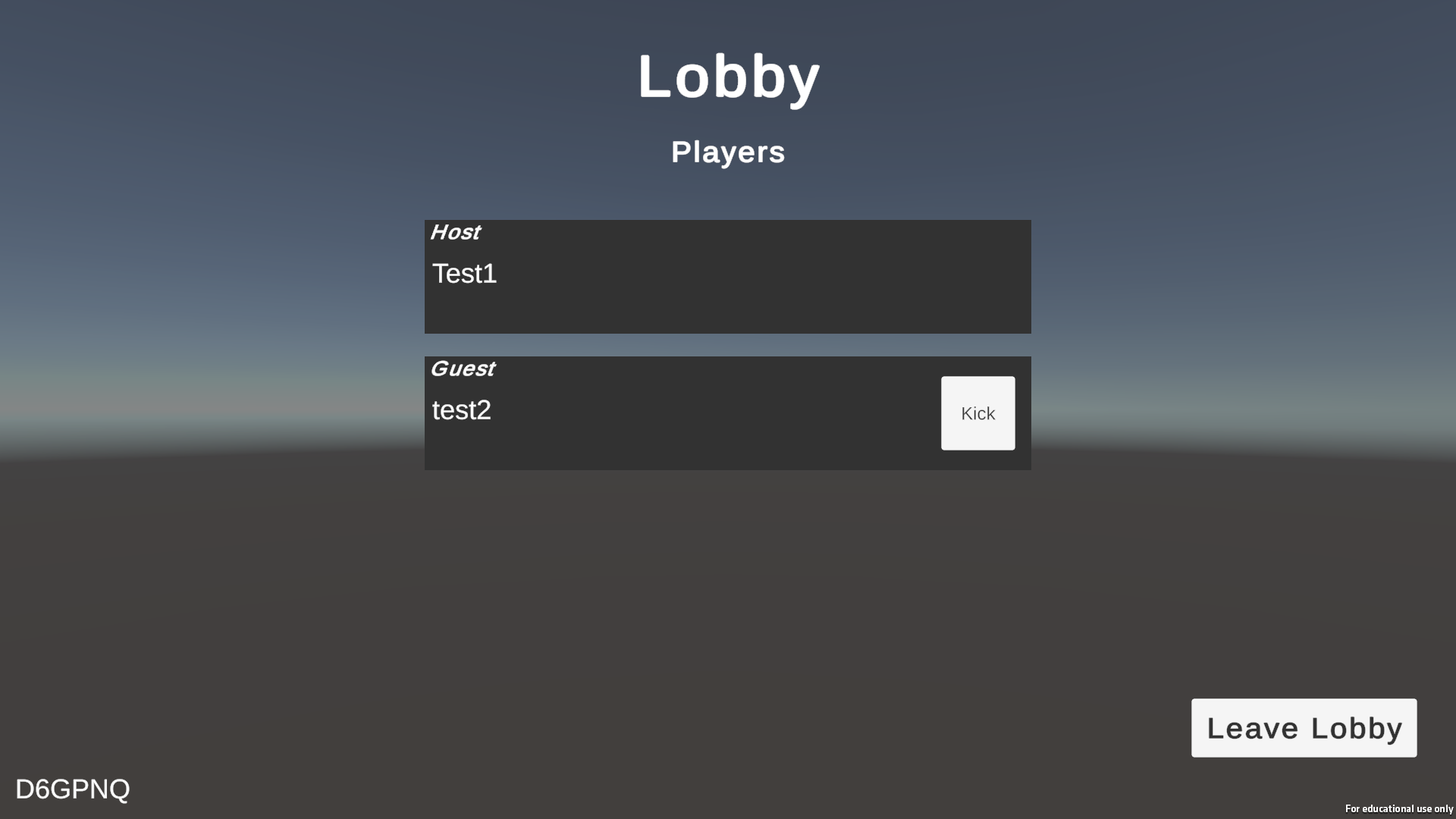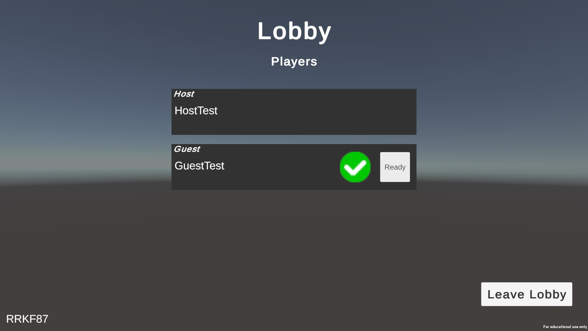 또한 우측 아래 Leave Lobby 버튼을 눌러서 로비에서 나갈 수 있으며 호스트가 로비를 떠날경우 로비 게스트 참여자도 강제로 로비에서 내보내는 방식으로 제작하였습니다.