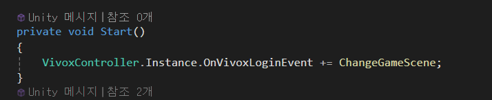 Vivox에 연결하는 메서드를 이벤트에 연결한 뒤, Vivox의 연결이 끝나면 게임 시작을 하도록 수정해주었습니다.