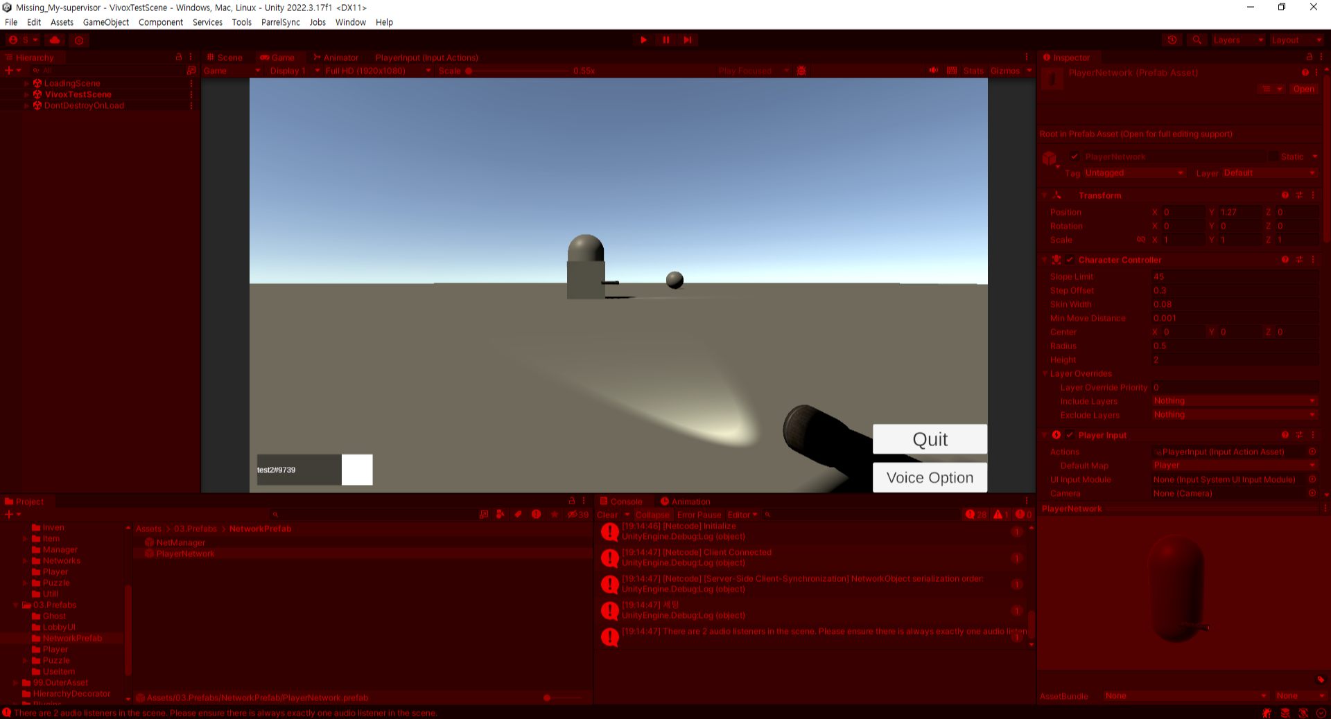 해당 문제의 경우 CharacterController 를 사용하여 멀티플레이를 구현할 때 발생하는 오류인것으로 확인하였습니다.