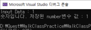 정수형 값을 입력한경우, number 변수에 1이 저장된것을 볼 수 있고, 문자열을 입력한경우 0이 저장된것을 볼 수 있습니다.