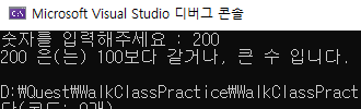 Console.WriteLine($"{number} 은(는) 100보다 같거나, 큰 수 입니다.");