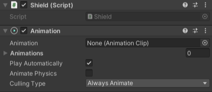 게임 오브젝트의 컴포넌트로 Animation이 있는데, 해당 컴포넌트를 붙이면 레거시 애니메이션 시스템을 사용하게됩니다.