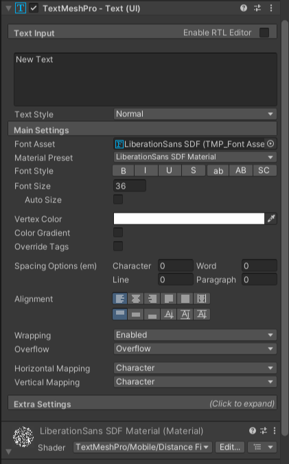 TMP로 만든 텍스트 오브젝트에는 이러한 컴포넌트가 붙게됩니다.