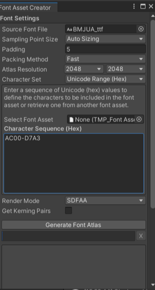 이 옵션을 Dynamic으로 변경할경우, 새로운 글자를 사용할때마다 폰트 텍스쳐에 해당 글자의 폰트를 찾아서 추가하게됩니다.