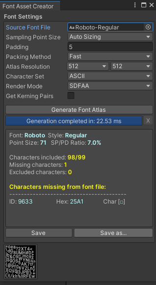 또한, TMP는 폰트를 Texture로 변환하여 사용하는 방식이기 때문에, Atlas Resolution이 작을경우 폰트가 저화질로 나오는 경우도 있습니다.