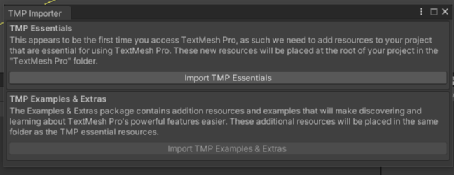Import TMP Essentials 버튼을 눌러 패키지를 받아줍니다.