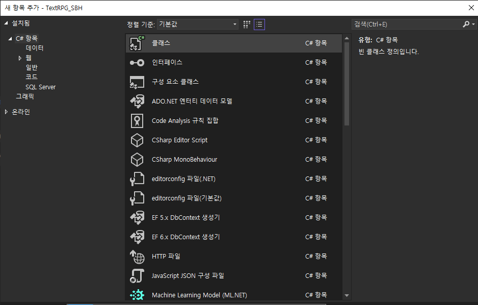 하지만 C# 자체를 사용할때에는 어떻게 해야 새로운 클래스를 만들 수 있는지 몰랐습니다.