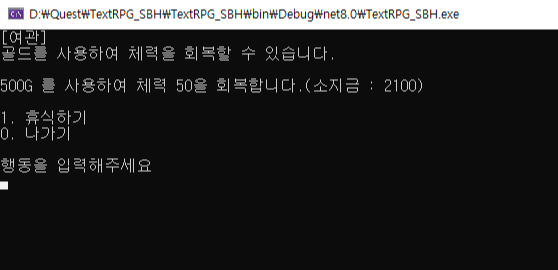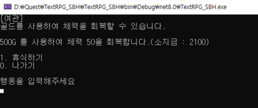골드를 사용하여 체력을 회복하는 휴식기능을 구현하였습니다.