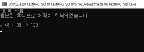 TextCreater("충분한 휴식으로 체력이 회복되었습니다.");