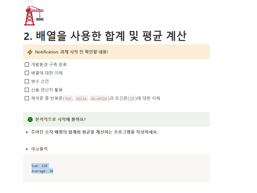 - 주어진 숫자 배열의 합계와 평균을 계산하는 프로그램을 작성하세요.