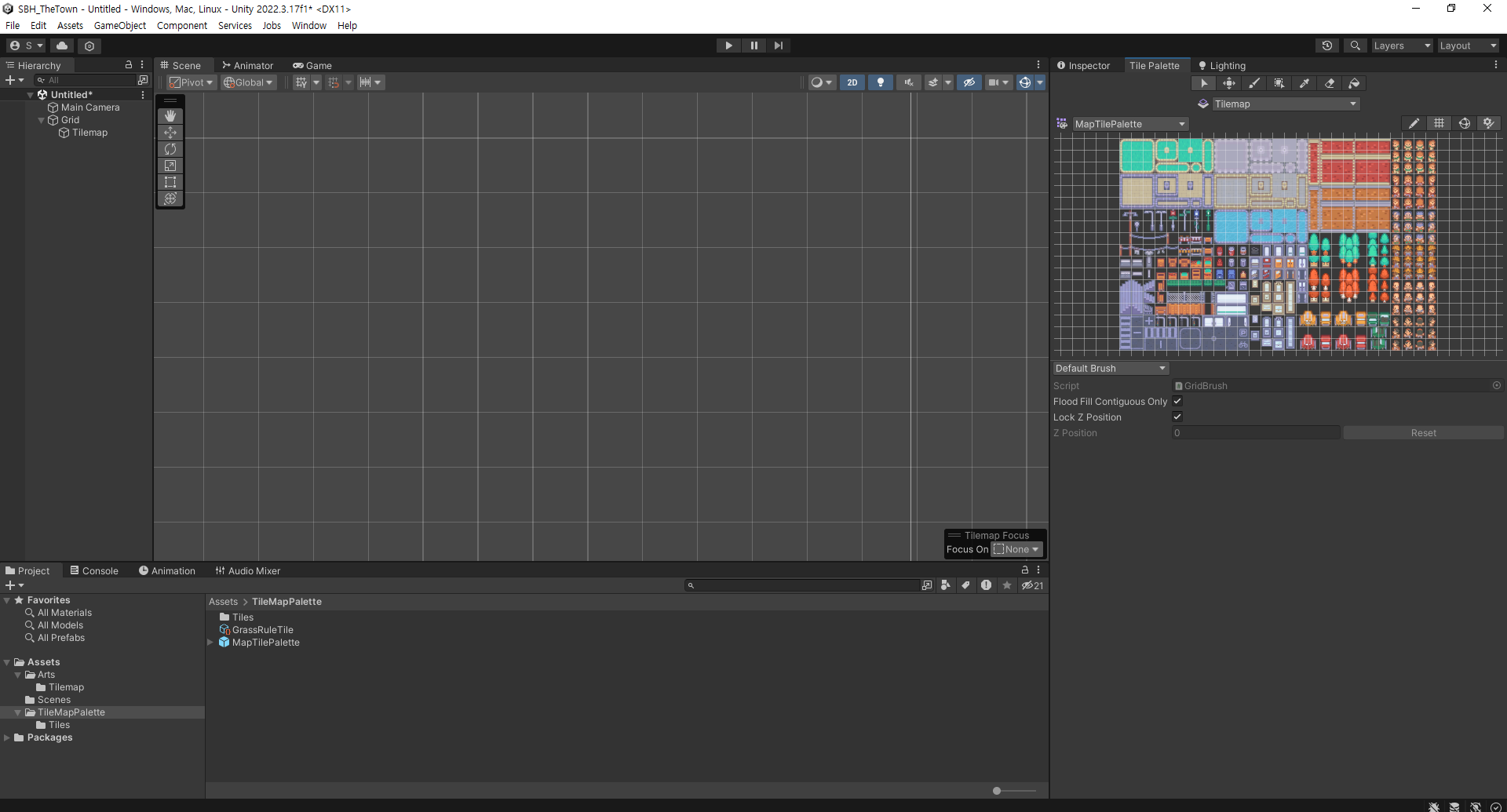 만들어준 타일맵 오브젝트에 타일을 설치할 수 있게됩니다.