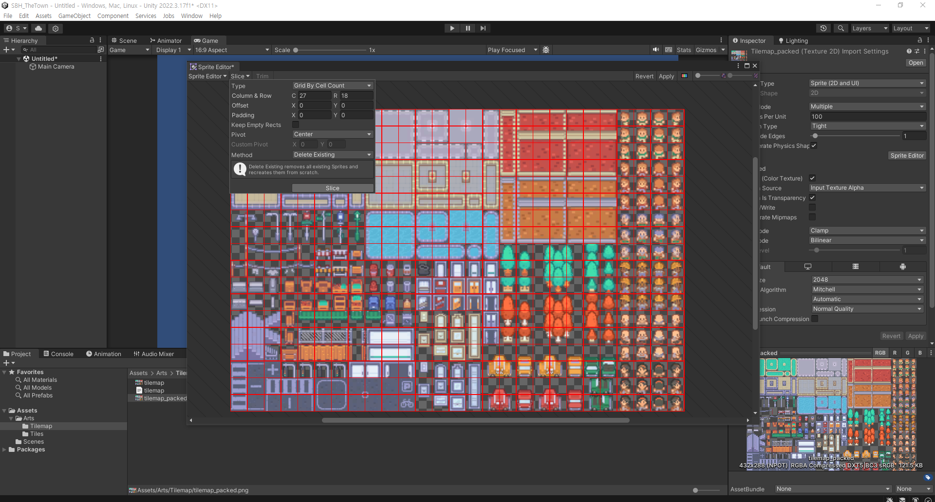 Slice 를 선택한 후, 이미지를 칸갯수로 나누는 Grid By Cell Count 옵션을 사용하거나 (사용 이미지는 27 X 18)