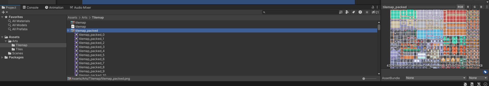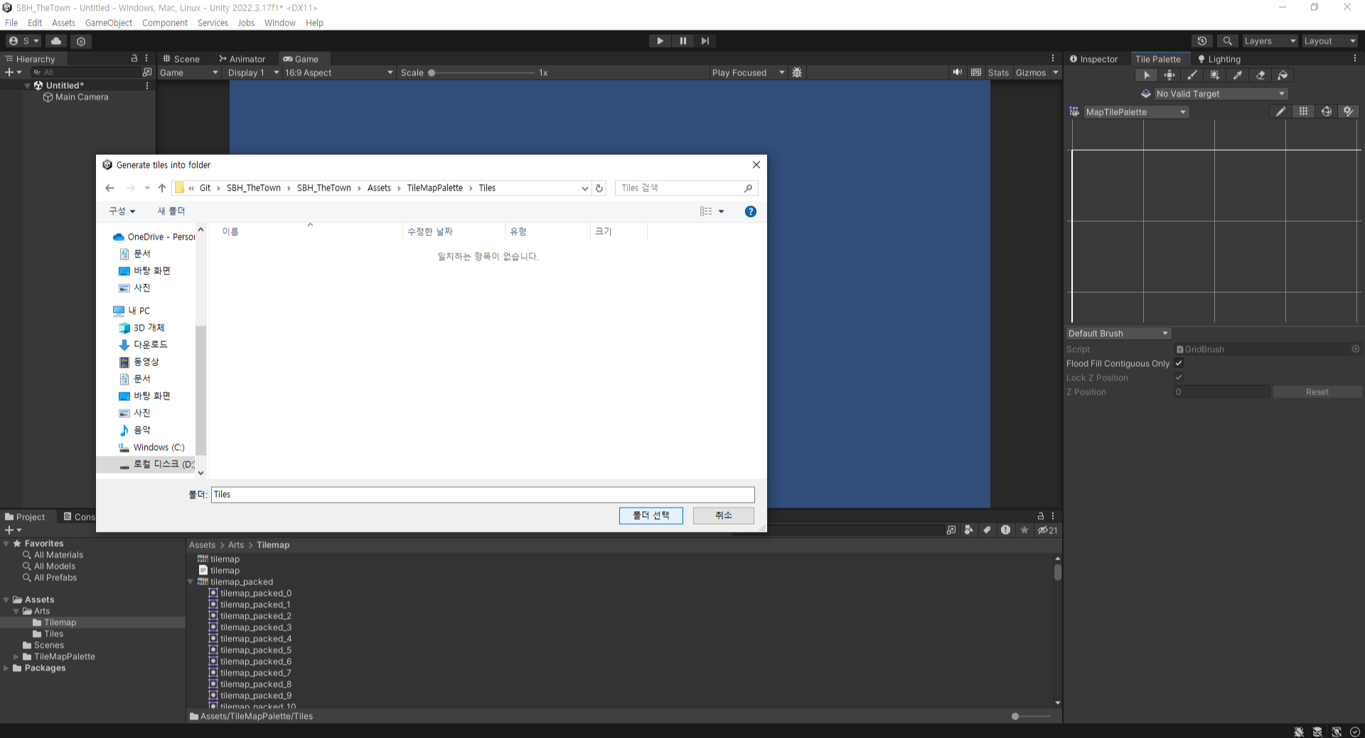 이후 맵 타일 팔레트에 잘라둔 이미지를 드래그&드롭 하면 타일을 저장할 폴더를 선택하게 됩니다.