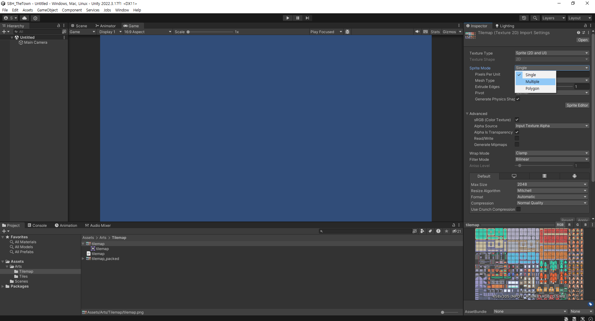 받아준 이미지의 Sprite Mode를 Multiple로 변경해줍니다.