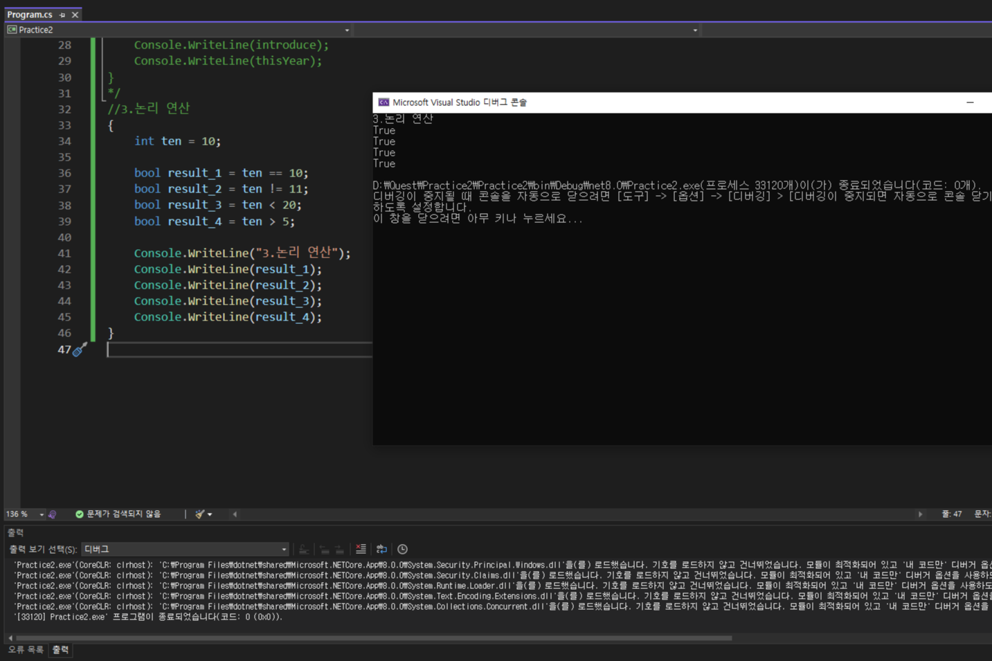 아래의 결과값이 전부 true 가 되도록 논리연산을 만들어 보세요.