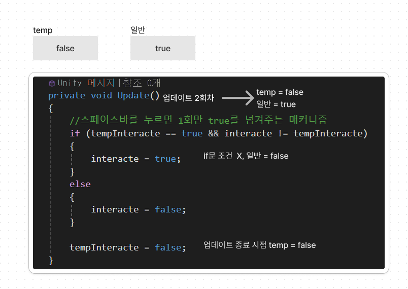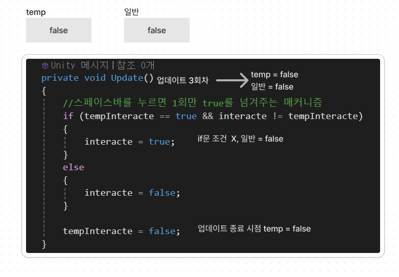 if문이 종료되면 tempInteracte 는 다시 false가 됩니다.