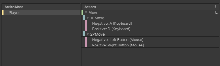 Move 액션에, 키보드와 마우스로 각각 등록해준 상태입니다.