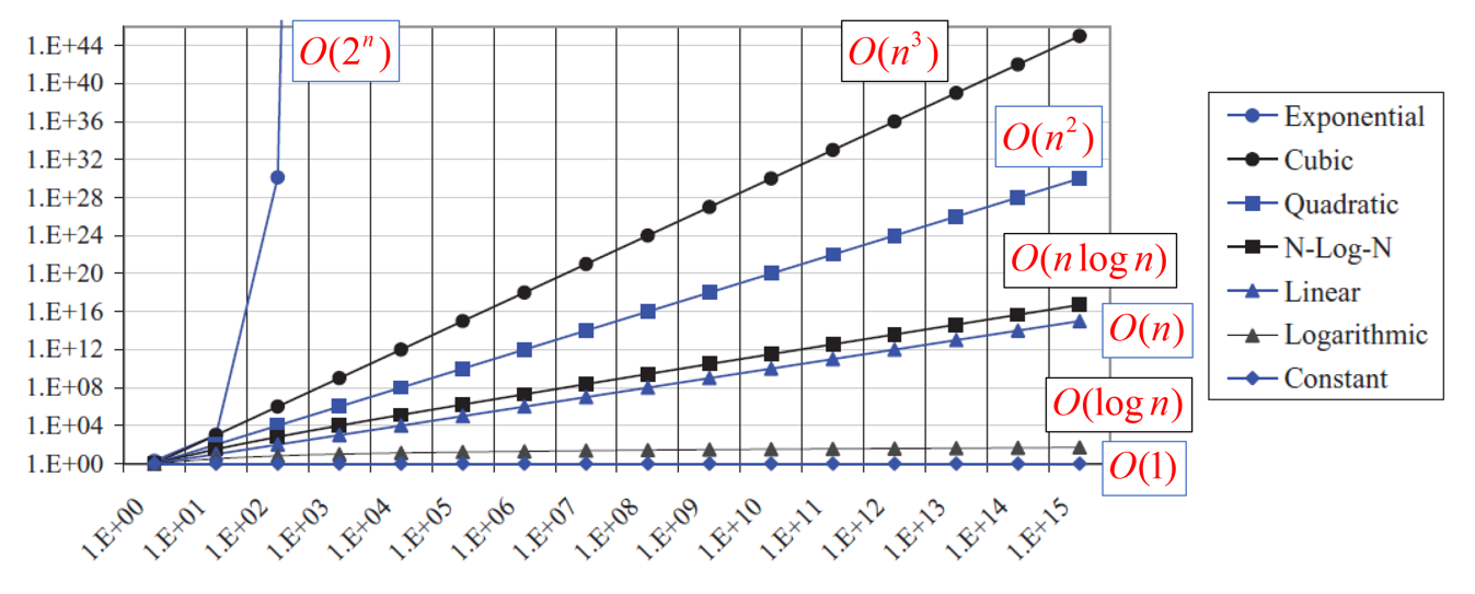 지수함수, 팩토리얼 함수 형태의 시간복잡도가 나타나는 연산은 되도록 피해야하며, 로그 - 선형 함수 이하의 연산이 가장 이상적입니다.