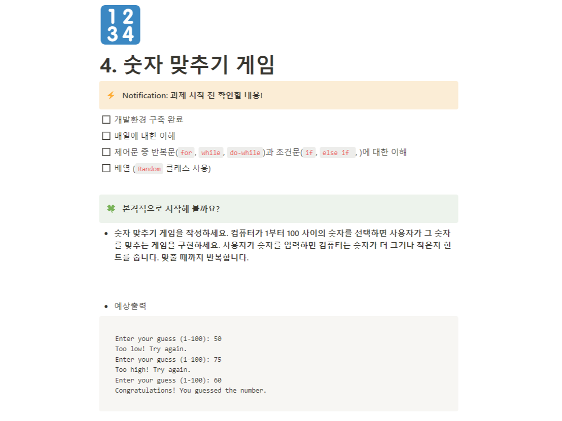 숫자 맞추기 게임 프로그램을 작성해야 합니다.