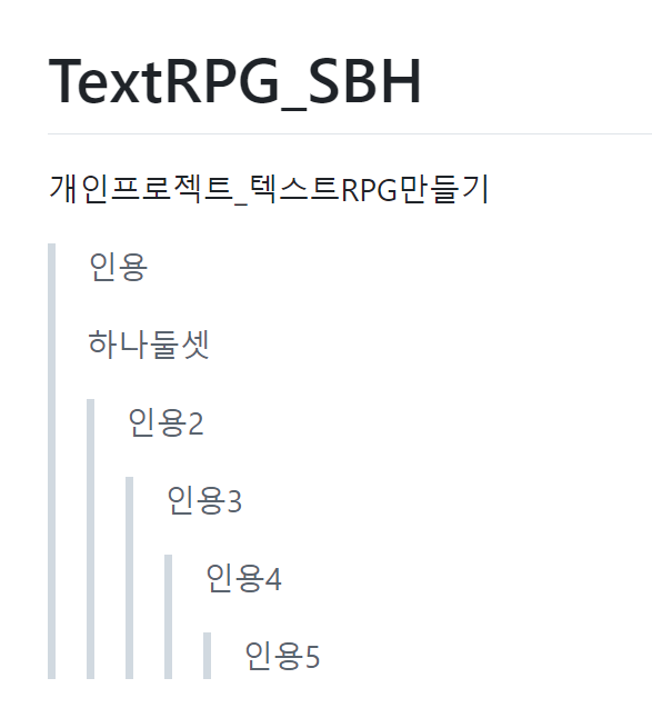 또한 >의 갯수를 늘려서 인용구 내에 인용구를 만들어줄 수 있습니다.