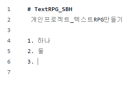 1. 을 입력한후, 내용을 입력하면 해당 줄에 번호를 부여합니다.